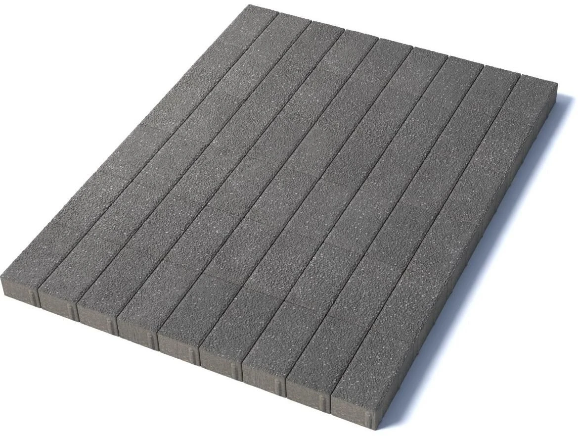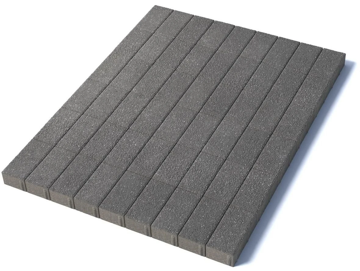 Изготавливается по уникальной технологии методом полусухого вибропрессования из бетона. Поверхность выполнена с оригинальной зернистой фактурой серого цвета. Натуральная Гранитная крошка в лицевом слое изделий наделяет плитку приятной шероховатостью, а также устойчивостью к скольжению. Брусчатка Прямоугольник 100х200 отличается высокой износостойкостью и практичностью в эксплуатации.