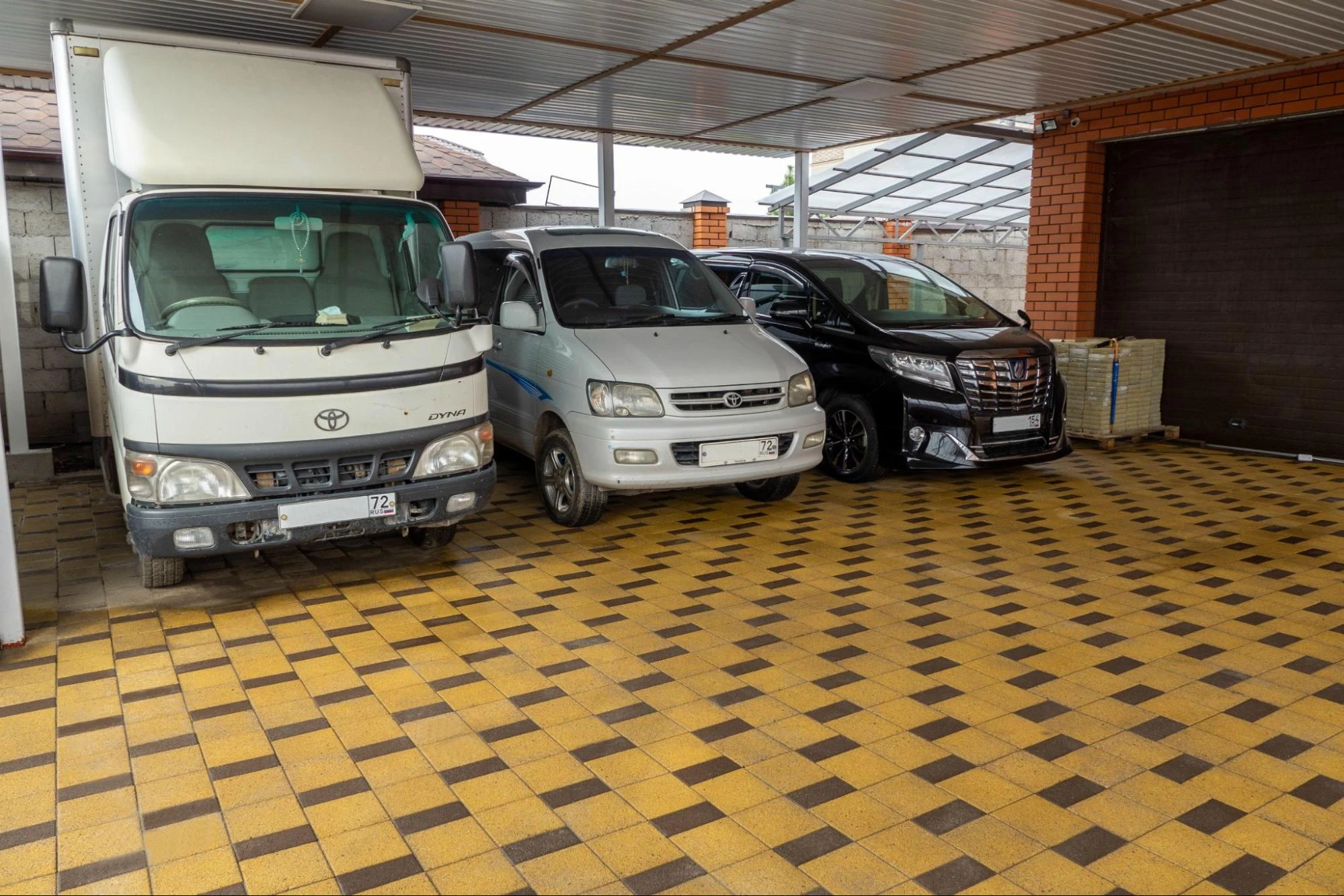 - Парковочные зоны. Использование при благоустройстве плитки толщиной 60-80 мм обеспечивает прочность и долговечность покрытия, выдерживающего нагрузку от автомобилей.