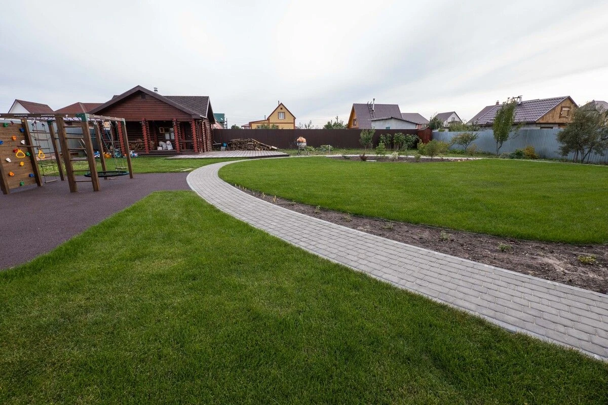Для пошаговых дорожек выбрана плитка Ла-линия (прямоугольник) 600х300х80 мм по 2 штуки в ряд. Стандарт, цвет белый.