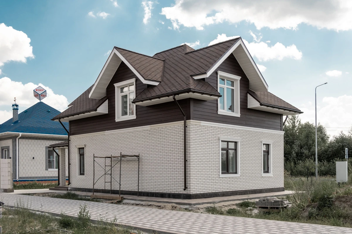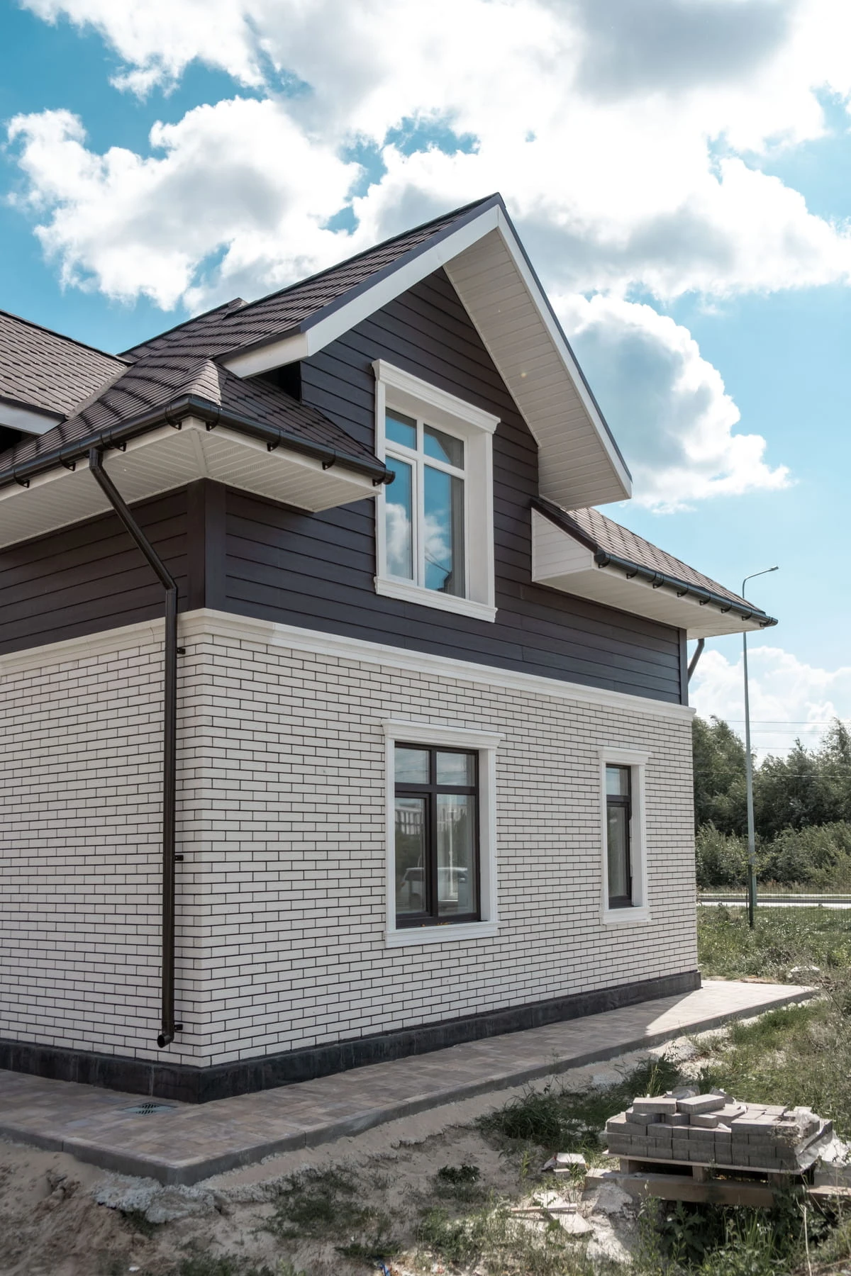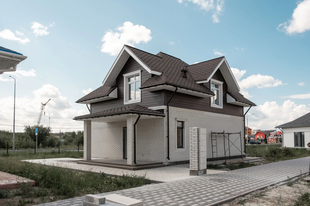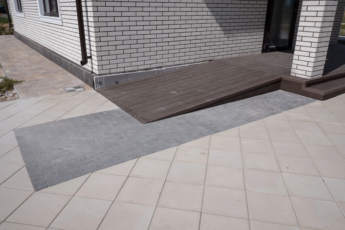 Пешеходные дорожки и отмостка выполнена тротуарной плиткой с применением бордюров.