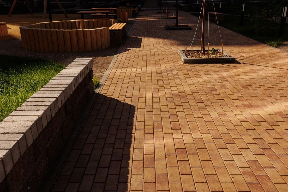 Для оформления дорожно-тропиночной сети была использована тротуарная плитка: